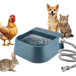 Automatic Dog Waterer only for 3/4” GHT Faucet – Auto fill water and provide constantly fresh water for animals, no need to add water to bowl, especially in the hot summer. The water flows out without splashing or making noise, so animals will not be frightened or disturbed when drinking water. Suitable for dogs, cats, goats, rabbits, ducks, chicken or farm animals.